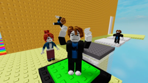 - Trolling mechanics: players can buy or earn slap/troll tools (hands, rockets, banhammer, etc.) to slap or pin other players off platforms. There are also fake/disappearing platforms and traps.