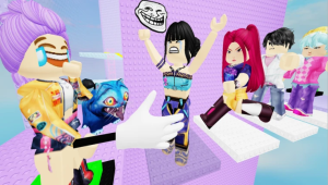 [edit | edit source]- Objective: Climb a colorful multi-level tower made of small platform tiles while other players try to slap/push you off. Some towers are “troll” style with traps and surprise obstacles; others are more parkour/obby-like.